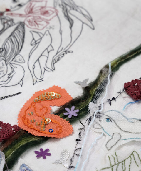 Hedendaags kunstenaar Alexandra Drenth is net als de Van Zeegens gefascineerd door de onderwaterwereld. Zij reflecteert in haar werk voor de tentoonstelling op het leven van vissen in gevangenschap en de huidige staat van de oceanen. Haar speciaal voor deze expositie gemaakte, onaffe borduurwerk kan door jou, samen met andere bezoekers, worden afgemaakt. Het gezamenlijke ‘doorborduurwerk’ is in de tentoonstelling in het Drents Museum te bewonderen.