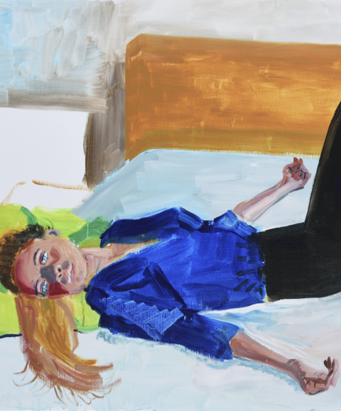 ‘'Ik heb van tevoren geen duidelijk idee van hoe een schilderij eruit moet komen te zien. Ik begin gewoon. Het mooiste is als ik in een proces kom waarbij het schilderij als het ware de regie overneemt, als het werk mij gaat vertellen wat er moet gebeuren. Dat loslaten is heerlijk'.’