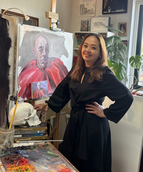 Jesamine Totañes (1982, Butuan city, Filipijnen) is masterstudent aan de Klassieke Academie voor beeldende kunst. In 2024 was ze te zien in het programma Project Rembrandt, waar ze de halve finale haalde. Totañes werkt snel en direct, met zelfverzekerde penseelstreken. Het vangen van de essentie van het onderwerp is heel belangrijk voor haar om succesvol portretten te kunnen schilderen. Met olieverf en brede kwasten vangt Jesamine Totañes de spontaniteit van het portret. In Atelier Gen F zal zij met bezoekers spreken en een aantal van hen vragen te poseren voor een portret.