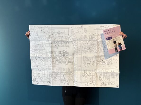 A large coloring page of Labyrinthia was created for the museum in collaboration with Studio Makii. This coloring page is for sale in the museum shop. Especially for the Doedag, a mega version of this drawing measuring a whopping 400 by 280 centimeters has been made. This way, all children can color in the entirety of Labyrinthia together!
