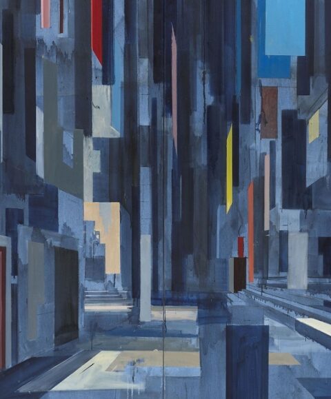 His monumental, fragmented paintings work biologically due to their sometimes unfathomable depth and bright colours. Especially the large formats with their single-point perspective suck you into the picture. Between abstract fragments, the remains of landscapes or interiors demand our attention.
