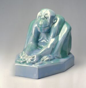 Willem Brouwer, Zittende aap, 1915-1920, geglazuurd keramiek, collectie Drents Museum
