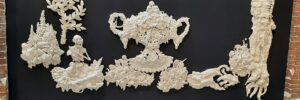 Wanneer verandert het leven in de dood? En waar ligt de grens tussen liefelijk en gruwelijk? In fabelachtige, glimmende keramische werken zoekt kunstenaar Carolein Smit (1960) een antwoord op dit soort vragen. Speciaal voor Bar Brasserie Pingo in het Drents Museum heeft Smit het werk Hond uit de pot gemaakt.