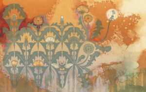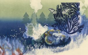 Speciaal voor de tentoonstelling Johanna van Eijbergen (1865-1950) - Markante Metaalkunstenaar (te zien t/m 18 september 2022) heeft illustrator Merlijne Marell (1986) nieuw werk gemaakt dat geïnspireerd is door de kunst van Johanna van Eijbergen. Zij verbleef hiervoor drie weken in Studio DM, de artist residence van het Drents Museum, om het werk van Van Eijbergen goed te kunnen bestuderen. Het resultaat: drie prachtige, kleurrijke illustraties waarbij Marell linosnede, monotype, kleurpotlood en oliepastel combineerde. De prenten hebben wij aangekocht voor onze collectie en zijn nu te zien in de tentoonstelling Johanna van Eijbergen.