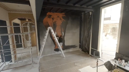 Op maandag 3 augustus is Schrikker begonnen met deze gigantische klus. Rond 15 augustus is het kunstwerk Hollow Eyes klaar. Op de muur komt een levensgrote olifant. Dieren staan in de kunstwerken van Schrikker centraal. De interactie tussen het dier en de kijker vormt een belangrijke rol; frontaal en confronterend of juist subtiel en onderhuids. Vanaf medio september is het kunstwerk voor iedereen te zien. De komende periode verblijft Schrikker in onze eigen artist residence.