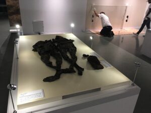 Bij binnenkomst van de tentoonstelling wordt je begroet door een grote foto van de Drentse veenlijken. Het zijn de topstukken van de tentoonstelling.