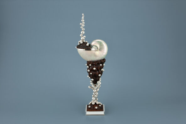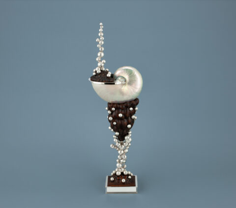 [] Daan Brouwer, Nautilusbokaal Oceanus III, 2024, zilver, buxushout en nautilusschelp, Drents Museum, aangekocht met steun van de VriendenLoterij. Foto: JAV Studio’s