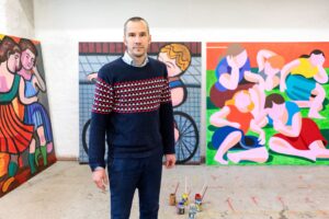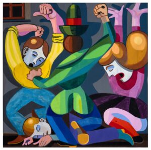 Dansend, pratend, drinkend, vechtend. De figuren in het werk van Christoph Ruckhäberle (1972) lijken midden in een theaterstuk te zijn bevroren.