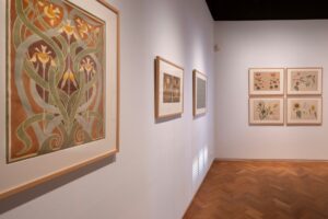 In de periode rond 1900 gingen steeds meer vrouwen naar kunstacademies. Afina Goudschaal (1877-1956) is afgestudeerd aan Academie Minerva, de Groningse kunstacademie. De opleiding van vrouwelijke studenten was anders dan die van mannelijke collega's. Zo besteedden vrouwen veel tijd aan het natekenen van bloemen en planten. Dit zie je terug in de gestileerde motieven van Goudschaal. Naast motieven worden er ook een aantal portretminiaturen van haar hand getoond.