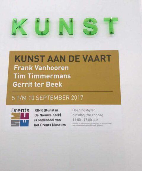Dit jaar is door de samenwerking van het Drents Museum en Kunst aan de Vaart de locatie in KINK (Kunst In De Nieuwe Kolk) toegevoegd. In de tentoonstellingsruimte van KINK (voormalige ruimte van het CBK) vormen de werken van Frank Vanhooren, Tim Timmermans en Gerrit ter Beek het startpunt van de kunstroute langs de Vaart. De werken zijn van 5 t/m 10 september 2017 te zien. KINK is dagelijks geopend van 11.00 – 17.00 uur. Meer informatie: zie www.kunstaandevaart.nl