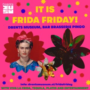 Tijdens de tentoonstelling staat ons museum op vrijdagavond in het teken van Frida Friday. Samen met je partner, vrienden, vriendinnen, familie en collega's kom je genieten van een heerlijke Mexicaanse borrelplank, Mexicaanse drankjes en entertainment in Bar Brasserie Pingo.