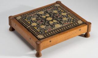 ◼️ Gerrit Willem Dijsselhof (voetenbankje), Wilhelmina Keuchenius (naaldwerk), Voetenbankje met borduurwerk (detail), circa 1900-1904. Collectie Drents Museum, schenking Stichting Schone Kunsten rond 1900