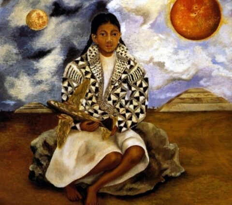 Frida Kahlo, Tehuacana meisje, Lucha María, of De zon en de maan (Sun and Moon), 1942. Olieverf op masoniet, Pérez Simón Collectie, Mexico©Rafael Doniz © 2021 Banco de México Diego Rivera & Frida Kahlo Museums Trust, Mexico Stad/ reproductie toegestaan door INBAL, 2021